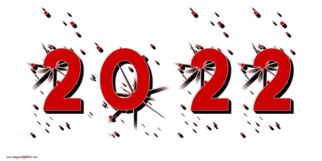 A vibrant animation celebrating Feliz Año Nuevo 2022 with colorful confetti and ribbons.