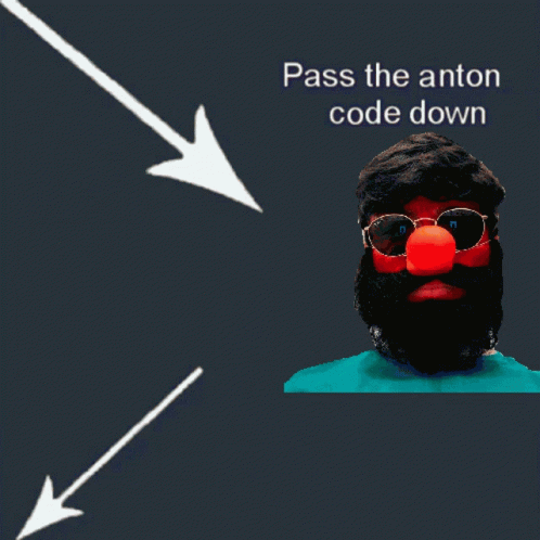 A meme featuring the Antonball Deluxe game cover and a person with a red nose, asking to pass the anton code down.