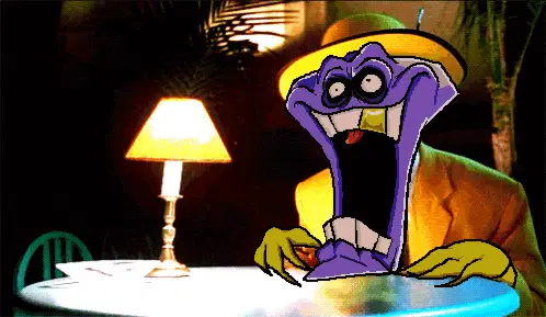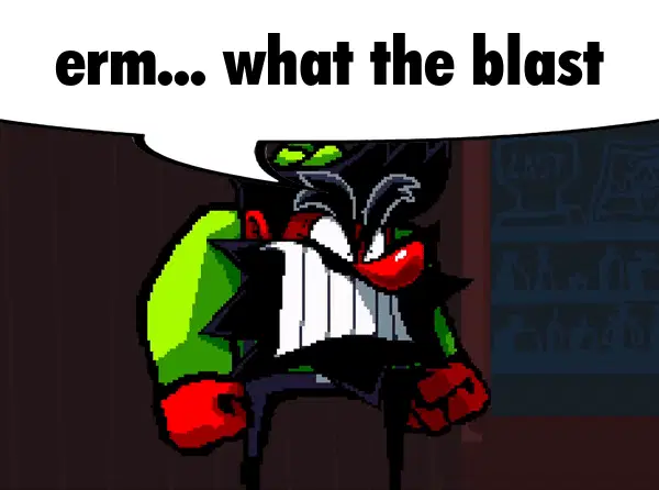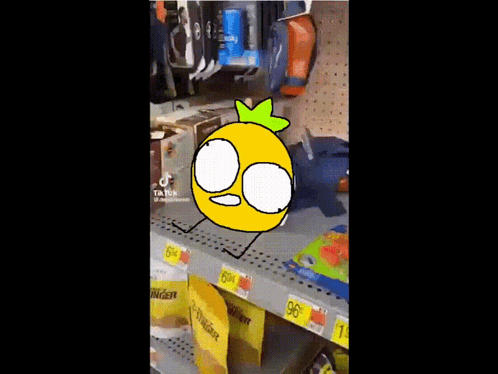 Antonblast character Pippo stands in a store aisle, looking around at the products on the shelves.