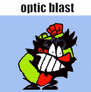 A pixelated cartoon character, possibly from Antonblast, performing an 'optic blast' move.