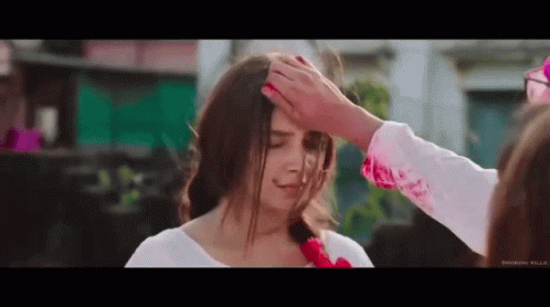Antu Byapok applies sindoor/color to Subhashree Ganguly's head in a scene from a Bengali movie.