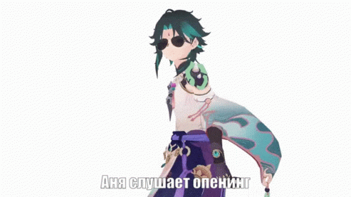 Anya, represented by the character Xiao from Genshin Impact, dances to an opening theme.