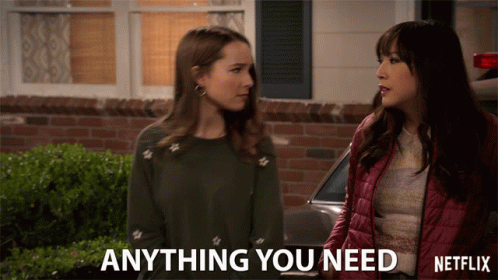 Bridgit Mendler as Emmy Quinn and Elizabeth Ho as Joy Quinn in a scene from Netflix's Merry Happy Whatever.