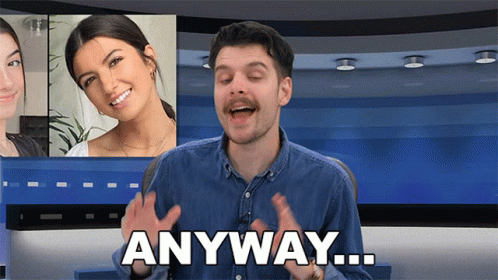 Benedict Townsend, a Youtuber, says 'Anyway...' in a studio setting with a picture of a woman in the background.