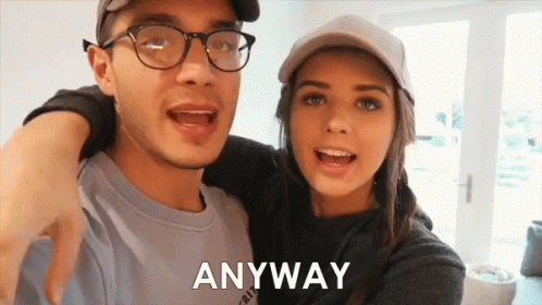 Jess and Gabriel Conte share a warm hug, with the caption 'ANYWAY' displayed.