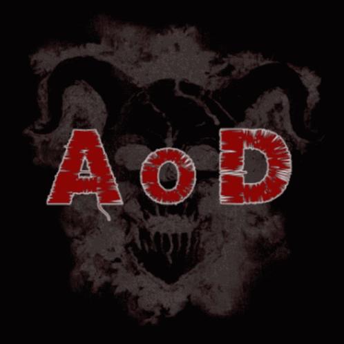 Aod Drakensangonline logo reveal featuring glowing red letters 'A o D' over a horned skull with smoke effects.