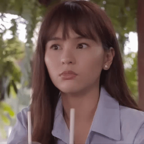 Aom Sushar looks thoughtful while holding two straws, possibly reacting to a conversation or situation.