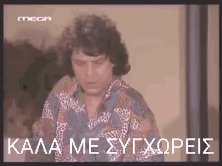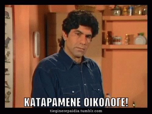A man in a denim shirt from the Greek series Aparadektoi says 'Kataramene Oikologe!' (Damned Ecologist!).
