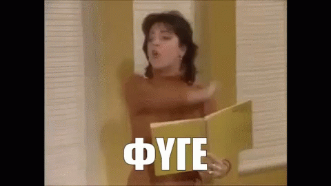 Dimitra from Aparadektoi dramatically exclaims 'Go away!' while holding a yellow folder, in a memorable scene.