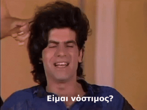 Gianni Mpezos asks about his hair, and Dimitra Papadopoulou reassures him in a scene from Aparadektoi.