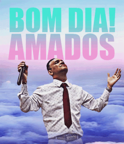 Apostolo Aguinaldo Silva delivers a 'Bom Dia Amados' message, looking skyward with a microphone.