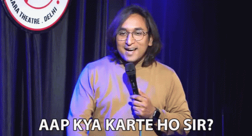 Comedian Appurv Gupta asks 'What do you do, sir?' during a stand-up performance.
