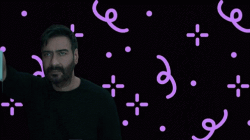 Ajay Devgun in a promotional video for Applause Entertainment, with blue graphics.