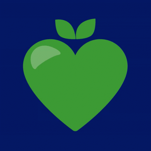An animated green heart with leaves, resembling an apple, is bitten, revealing the text 'Taking a bite of'.