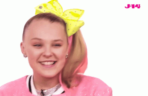 JoJo Siwa, wearing a pink sequined jacket and her signature bow, gives an enthusiastic double thumbs up.