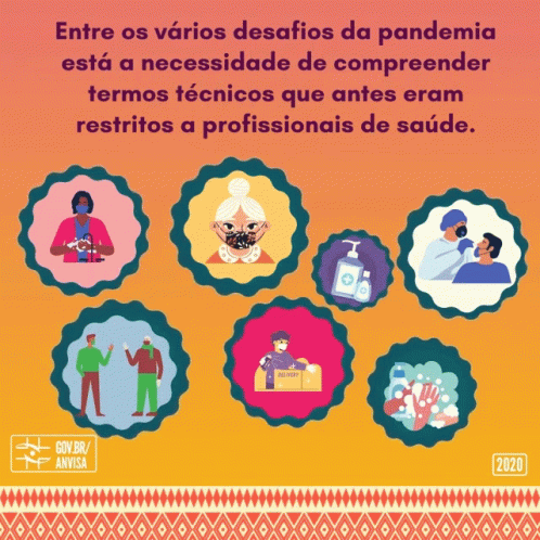 An infographic from ANVISA (Brazil) about understanding health technical terms during the pandemic, featuring various illustrations.