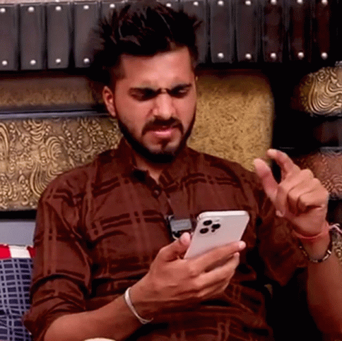 Shivam Sharma looks annoyed and frustrated while intensely looking at his phone, expressing a strong reaction.