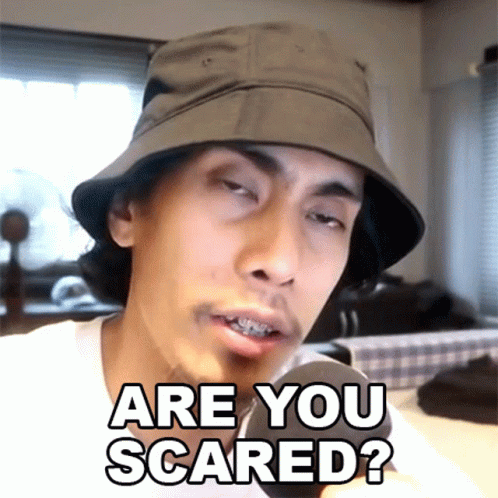 Gloco, wearing a bucket hat, asks the viewer 'Are You Scared?' with a direct gaze.