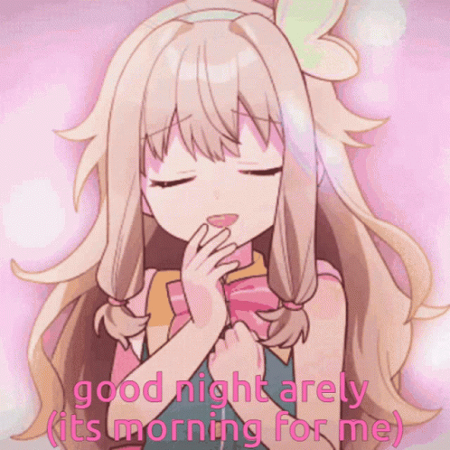 Anime girl Arely August with a 'good night' message, despite it being morning for the sender.