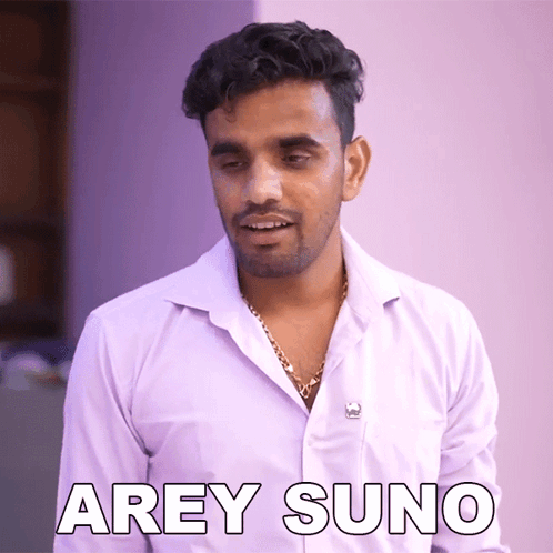 Prince Verma, wearing a light purple shirt, speaks the Hindi phrase 'Arey Suno' (Hey listen).