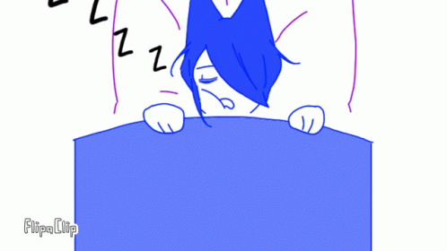 Artc Aqyla is sound asleep in bed, snuggled under a blue blanket with 'zzz's floating above.