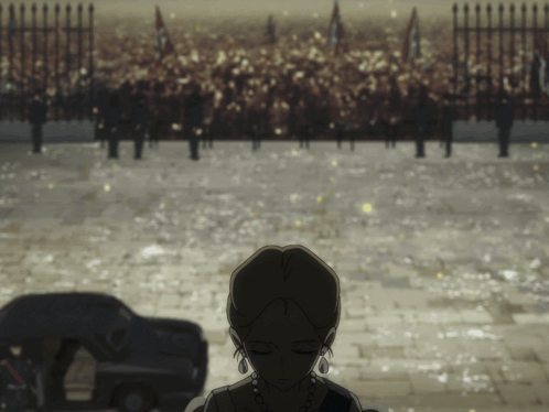 a woman with her eyes closed in front of a crowd