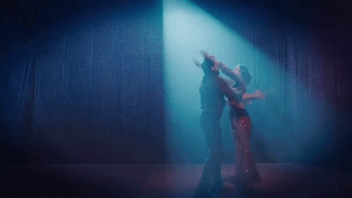 Arylie and Imlie share a passionate dance under a blue spotlight, embracing each other on stage.
