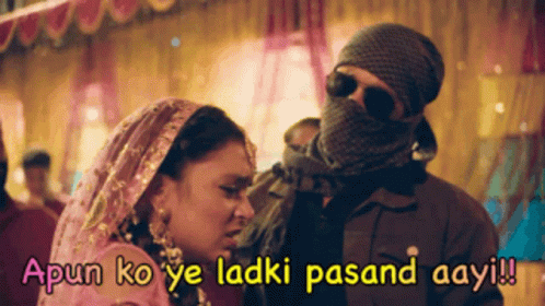 Arylie and Imlie in a scene where a man expresses his liking for the woman with the caption 'Apun ko ye ladki pasand aayi!!'