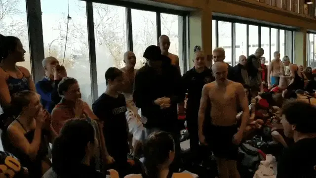 Juana Viale in a vibrant, multicolored dress, gesturing on set.