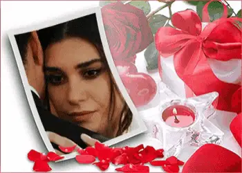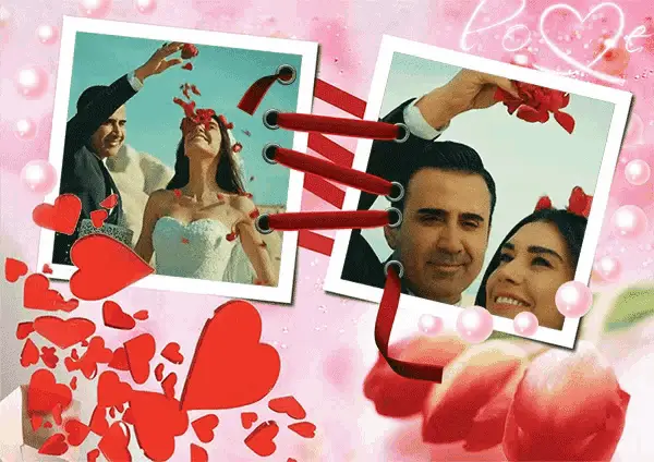 Emrah Erdoğan and İpek from 'Aşk Ve Mavi' embracing in a vibrant field of flowers, symbolizing their love.