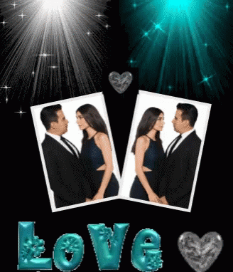 Emrah and Burcu from Aşk ve Mavi look at each other, with the word 'Love' displayed prominently.