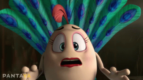 Pavi, the animated character from Un Rescate De Huevitos, looks shocked and amazed with wide eyes.