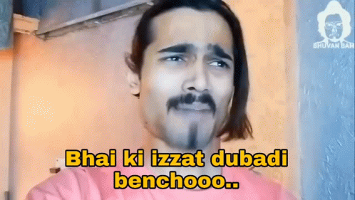 Bhuvan Bam as Asraj from Bb Ki Vines, reacting with the iconic dialogue 'Bhai ki izzat dubadi benchooo..'