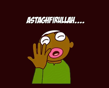 Animated character reacting with wide eyes and open mouth, expressing 'Astaghfirullah' (I seek forgiveness from Allah).