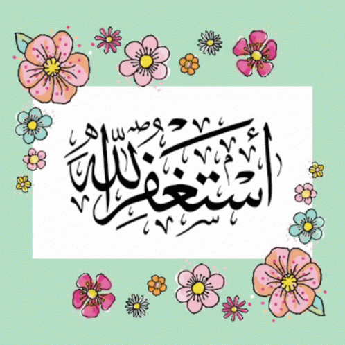 Beautiful Arabic calligraphy of "Astaghfirullah" (I seek forgiveness from God) framed by colorful flowers.