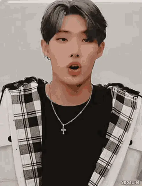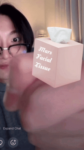 Ateez's Seonghwa holds up a box of Mars Facial Tissue, smiling at the camera.