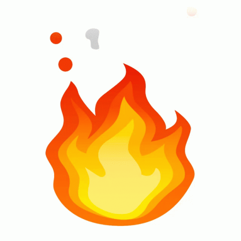 A vibrant fire graphic with orange and yellow flames and white smoke rising.
