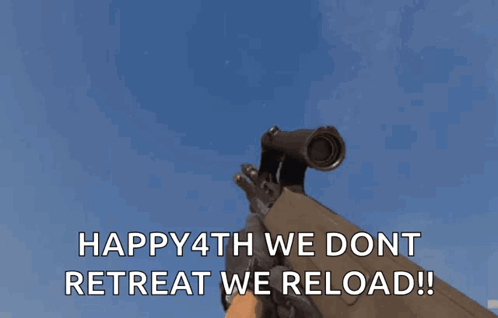 Ailisnotgay performs an AUG reload animation with the text 'HAPPY4TH WE DONT RETREAT WE RELOAD!!'