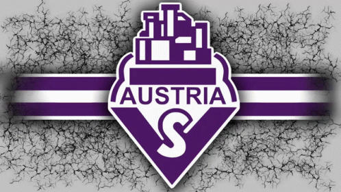 Dynamic purple and white Austria Salzburg Svas logo flashing on a textured background with horizontal stripes.