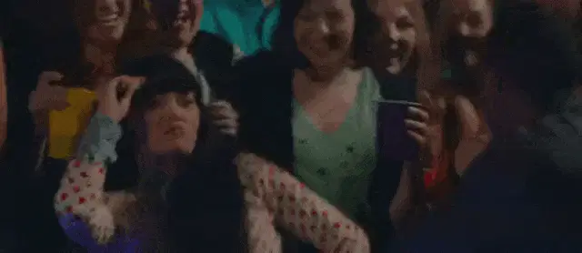 Arabella Kiesbauer in a silver sequined dress reacts with a surprised and then playful expression, pointing her finger.