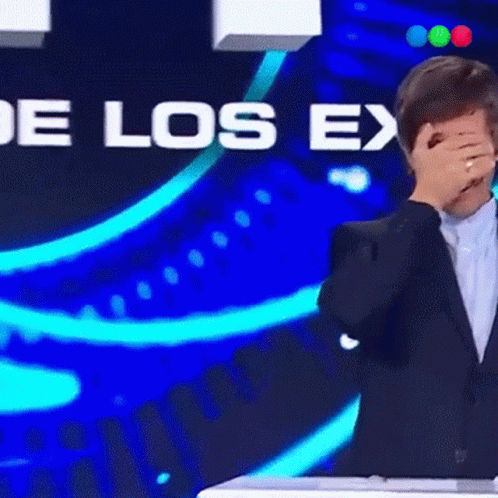 A man from Gran Hermano on Telefe covers his face, appearing deeply embarrassed or humiliated on stage.