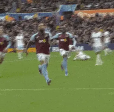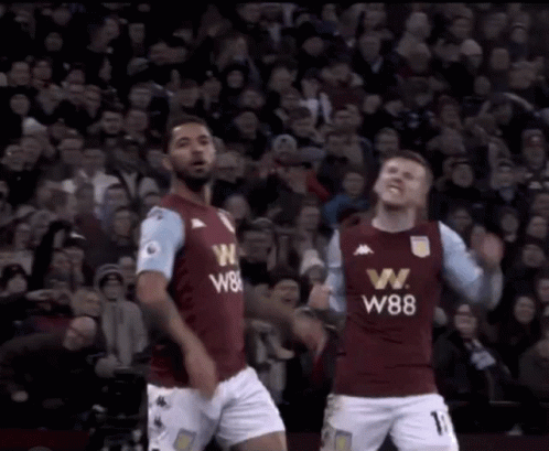 Douglas Luiz celebrates with a fist pump in his Aston Villa FC kit during a football match.