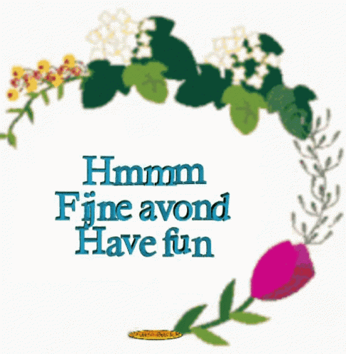 A charming animated greeting with flowers, wishing 'Hmm Fijne avond Have fun'.