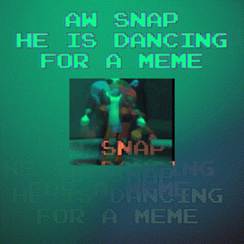 A pixelated figure dances with the caption 'Aw Snap He Is Dancing For A Meme' against a color-changing background.