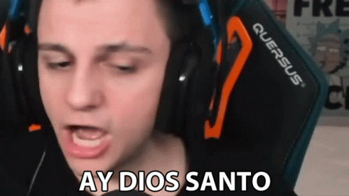 David Canóvas Martínez (Ampeterby7) reacts with a shocked expression, exclaiming 'Ay Dios Santo'.
