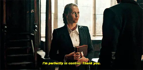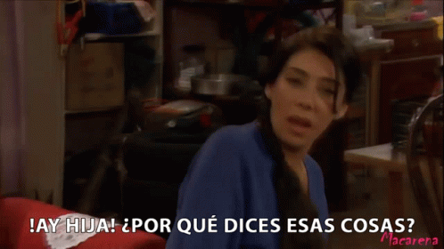 Cynthia Klitbo as Teresa, looking concerned and asking '¡Ay Hija! ¿Por qué dices esas cosas?'