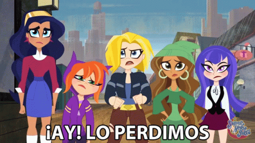 Batgirl, Wonder Woman, Supergirl, Bumblebee, Jessica Cruz, and Zatanna react with '¡Ay! Lo Perdimos'.