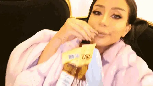 A chef in an apron smells a pot of food, exclaiming "¡Ay Papa!" with excitement during a cooking show.