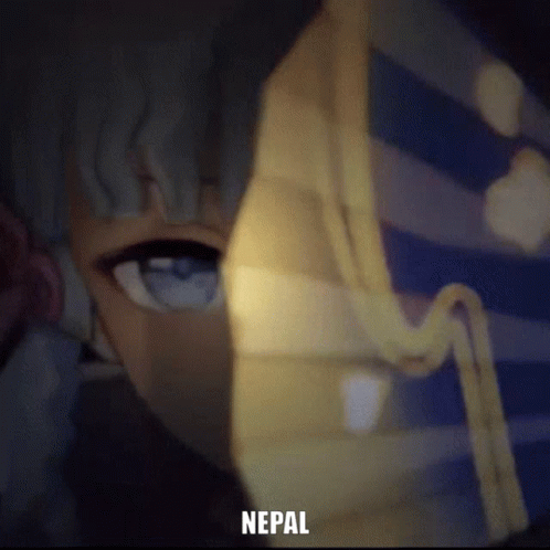 Close-up of Ayaka from Genshin Impact, with 'Nepal' text overlay.