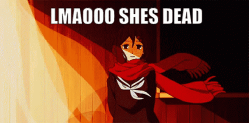 Ayano Tateyama from Kagerou Project with the humorous caption 'LMAOOO SHES DEAD'.